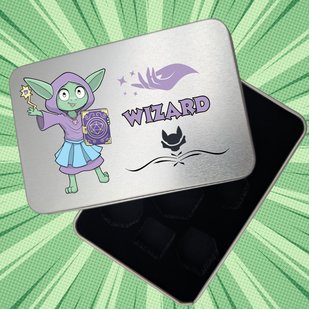 Choose your adventurer with these adorable class dice tins, featuring Quinny's own party members.