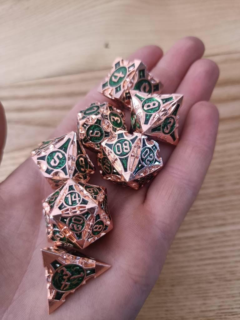 There are 300+ different dice sets available, each dice set contains a set of 7 polyhedral dnd dice chosen at random, some of which we stock online, others we may have only just stocked so you could get a unique set not available anywhere else.