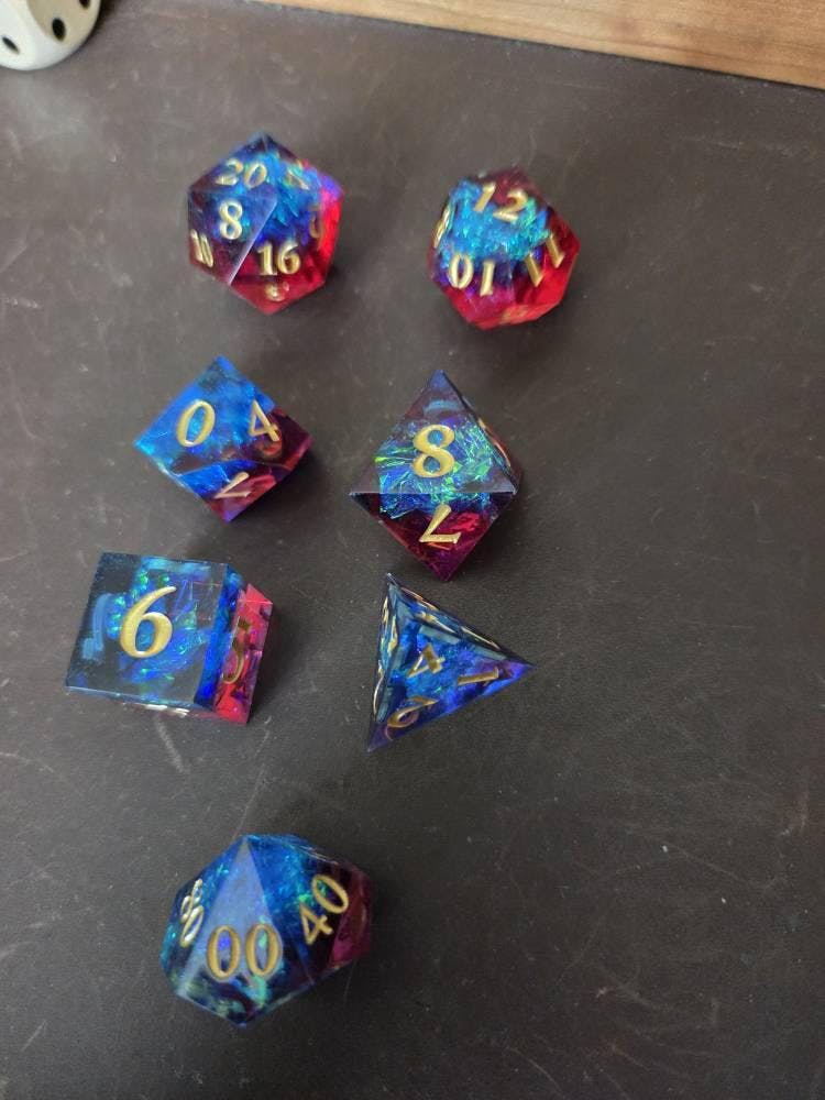 There are 300+ different dice sets available, each dice set contains a set of 7 polyhedral dnd dice chosen at random, some of which we stock online, others we may have only just stocked so you could get a unique set not available anywhere else.